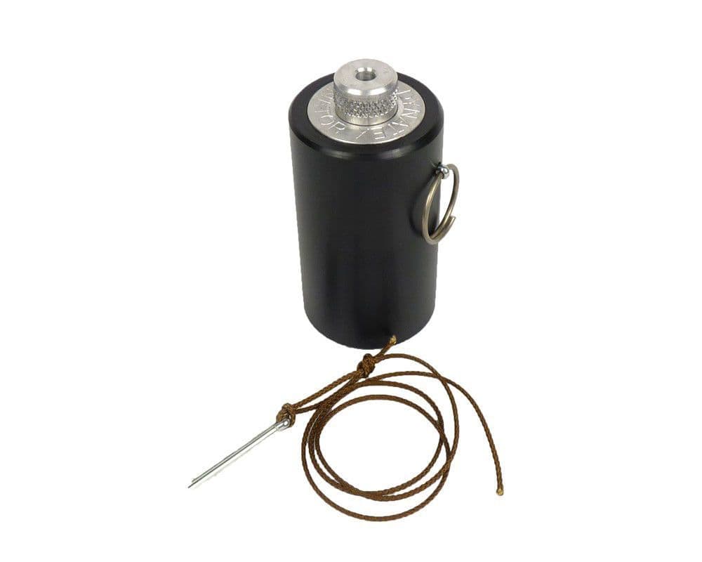 The grenade includes one Primer adaptor for .209 Shotgun Primers. The kit also includes an additional pin on a string, which can be tied to a rig in order to pull the pin when it is pulled out of a pouch for ultra fast deployment.